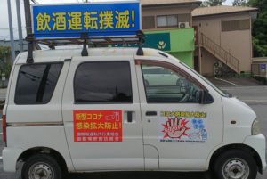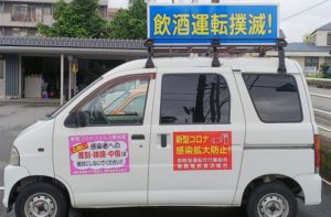 また、同事業は全国初の試みとして岳麓新聞(静岡県)、静岡新聞(同)にも記事が掲載され、活動が広く知られることになりました。更に2020年9月21日から行われた秋の交通安全週間では、街宣車が巡回し、飲酒運転撲滅とコロナ感染拡大防止、感染者への誹謗・中傷防止をアピールをして、街頭広報活動を行いました。
