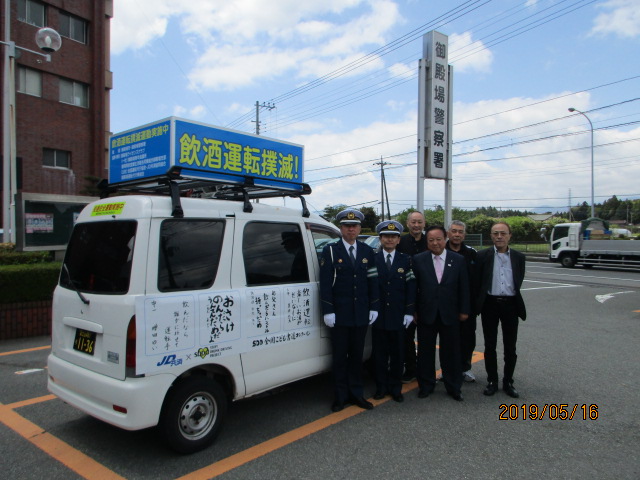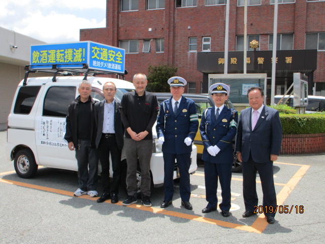 組合会員で構成する「御殿場運転代行業組合」の高瀬朋宏会長が、夏の交通安全県民運動に合わせて、軽ワンボックスカーを宣伝カーとして2019年7月20日(土)まで運行させる「飲酒運転撲滅」活動が、静岡新聞と岳麗新聞に取り上げられました。紙面画像は、高瀬代表と会員が所轄の御殿場署へ活動の届け出のため訪問したときの様子です。